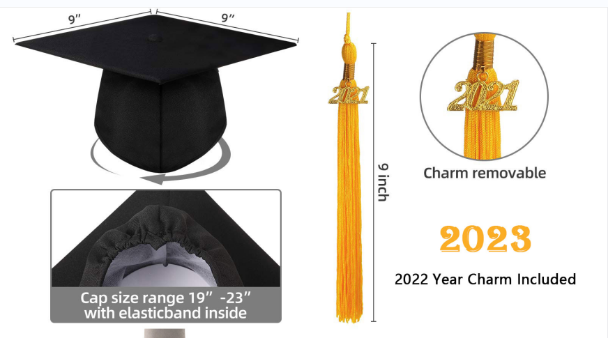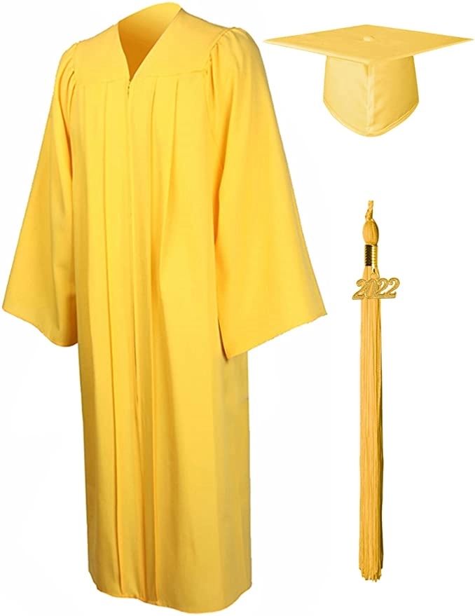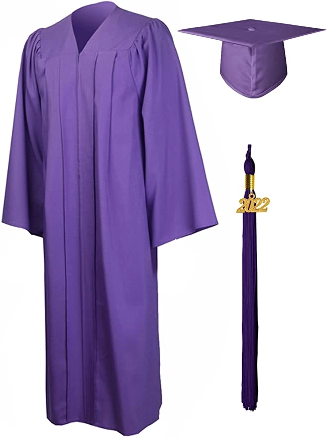 Graduate from school wearing an impressive and complete cap and gown set that is made using high quality polyester. Sturdy Hidden Color Matching Zipper in front, Strong Center Pleats on the Front and Back Shoulders of Gown.Easy Cleaning: Machine Wash or Dry Clean, ironing in low temperature is recommended to keep gown wrinkle free. The cap can not wash. Package: Includes 1 Graduation Gown, 1 Graduation Cap, 1 Graduation Tassel, 1 Graduation Year charms.Dress size available: 39,42,45,48,51,54,57,60,63,66 Full Fit size: 39FF,42FF,45FF,48FF,51FF,60FF,63FF,66FF Cap and Tassel: one size fits all.